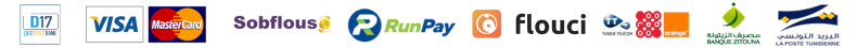 Nous acceptons les paiements par carte bancaire (Visa, MasterCard), D17 et virement bancaire,WafaCash, IZI Pay. Tous nos paiements sont sécurisés pour garantir votre tranquillité d'esprit.