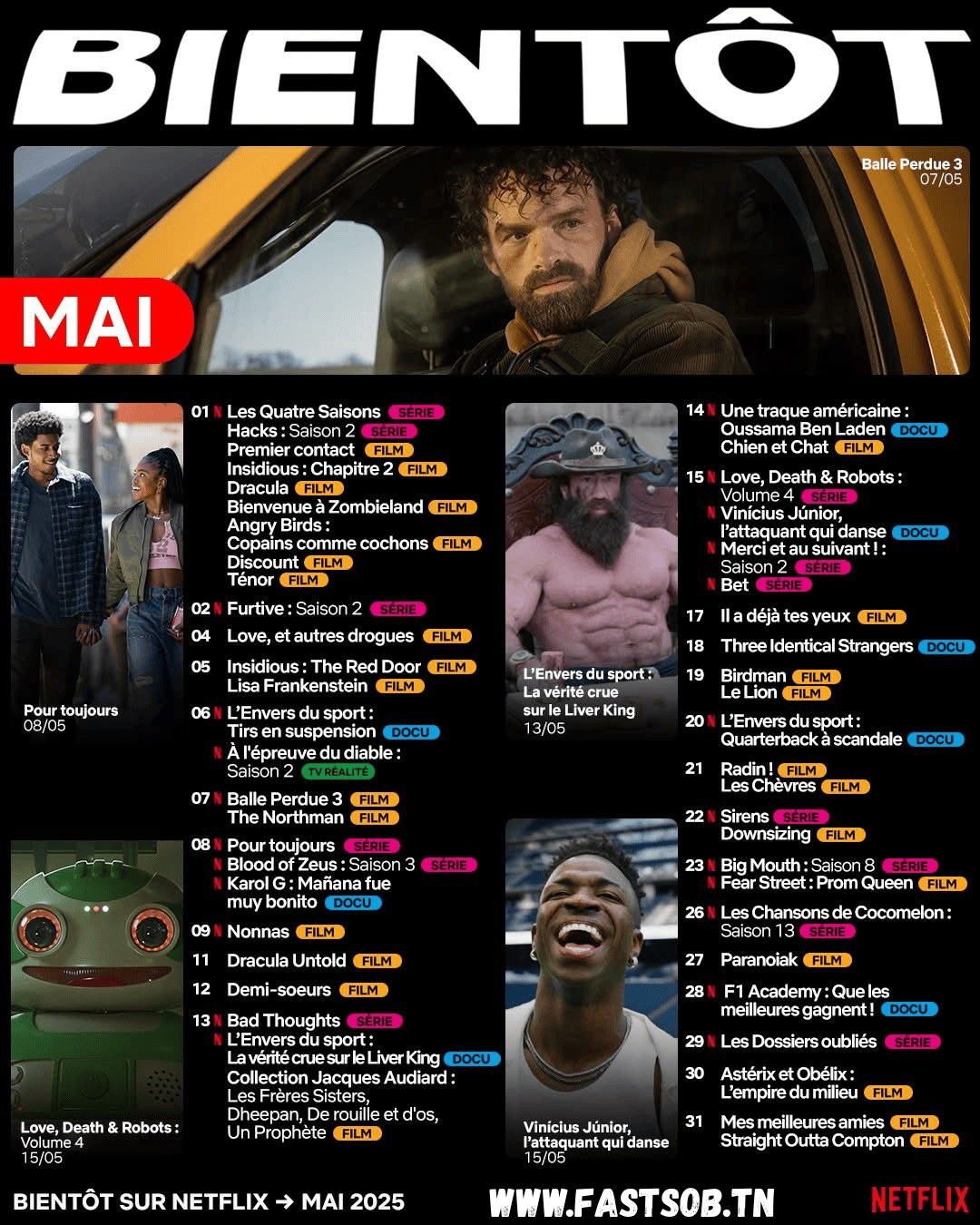 Le mois de mai 2025 s’annonce palpitant pour les abonnés de Netflix. Avec près de 9 nouveaux films et séries disponibles dès le 1er mai, il y a de quoi se réjouir ! Que ce soit des drames touchants, des comédies acides ou des thrillers palpitants, voici ce qui vous attend ce mois-ci.
